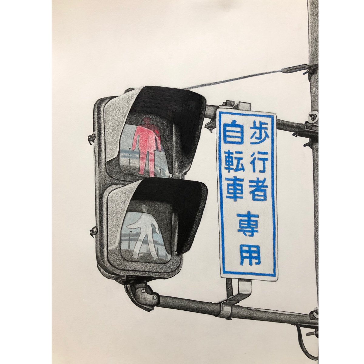 歩行者用信号機を描きました。 #イラスト好きと繋がりたい #アート好きな人と繋がりたい #色鉛筆 #芸術同盟