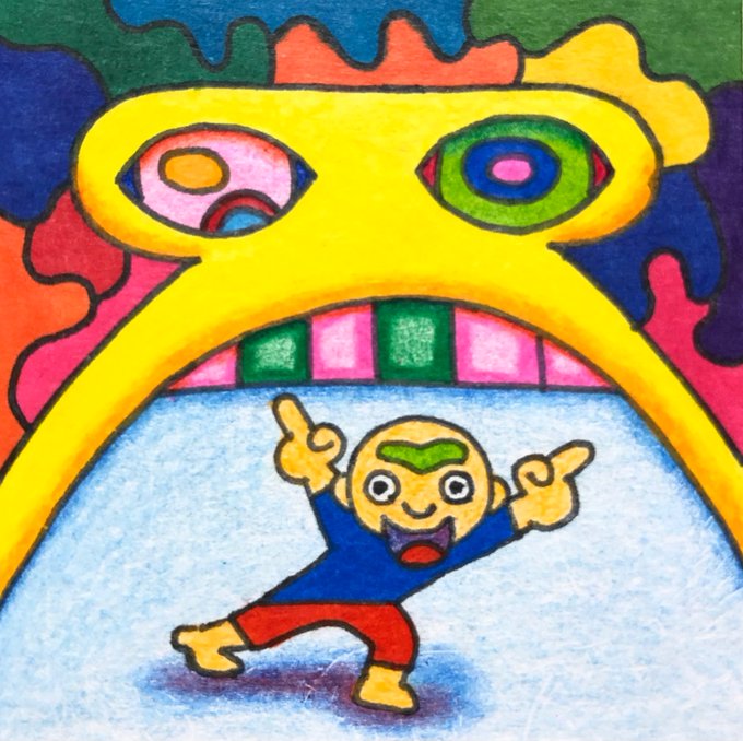 1 12 宇宙人の口の中で、おっちゃんが踊っています。 #イラスト #イラスト好きな人と繋がりたい #アート好きな人と繋がりたい #芸術の輪 22/08/04 19:06