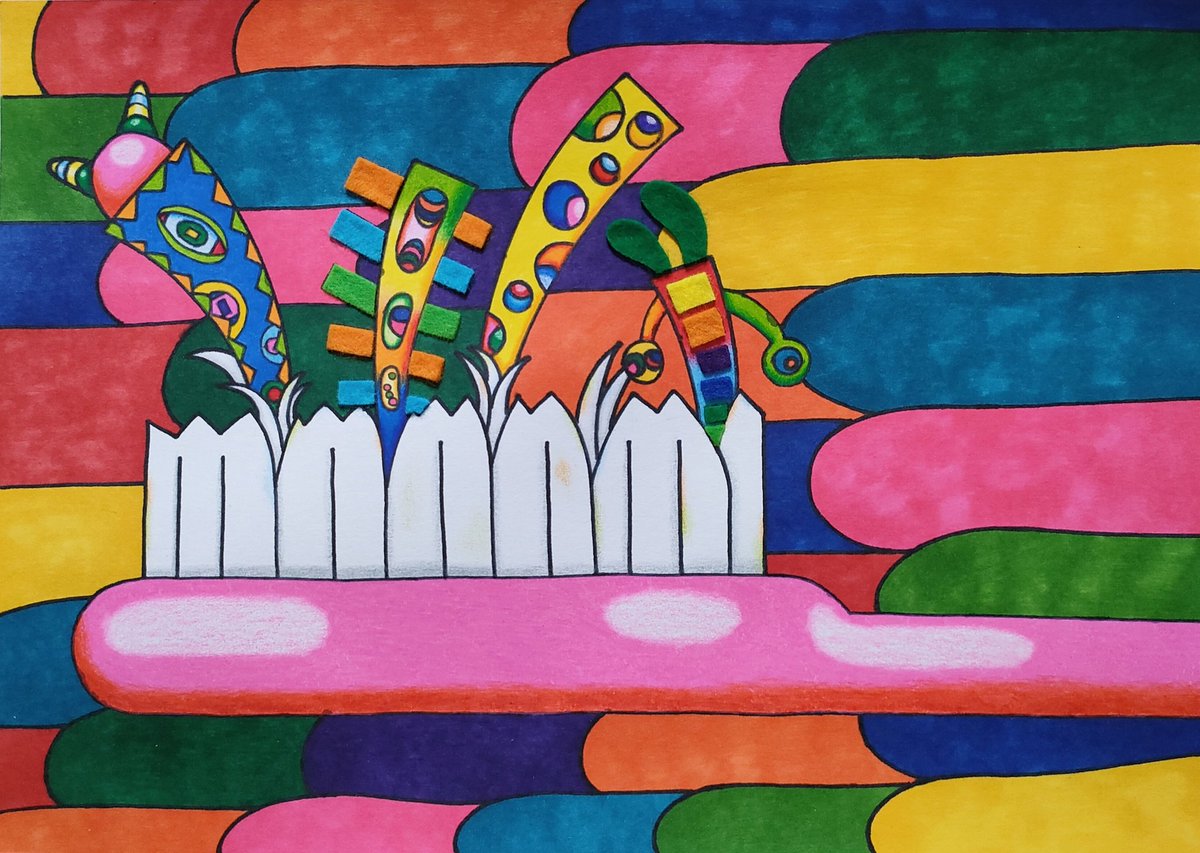 歯ブラシから宇宙人が生えています。 #イラスト #イラスト好きな人と繋がりたい #アーと #芸術の輪