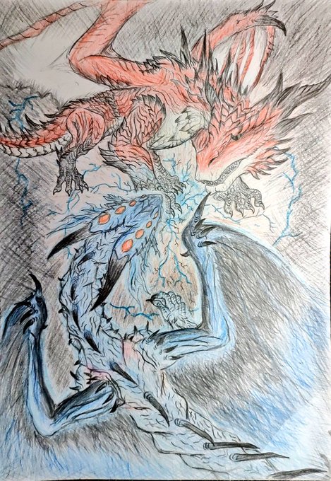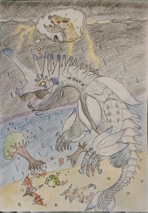 「龍の王、大地の脈動に導かれ」 ゼノ・ジーヴァ、ムフェト・ジーヴァのイラストを描いてみました! 個人的に結構頑張って描いたので見てくれると嬉しいです…! #モンハン #MHWI #イラスト好きな人と繋がりたい