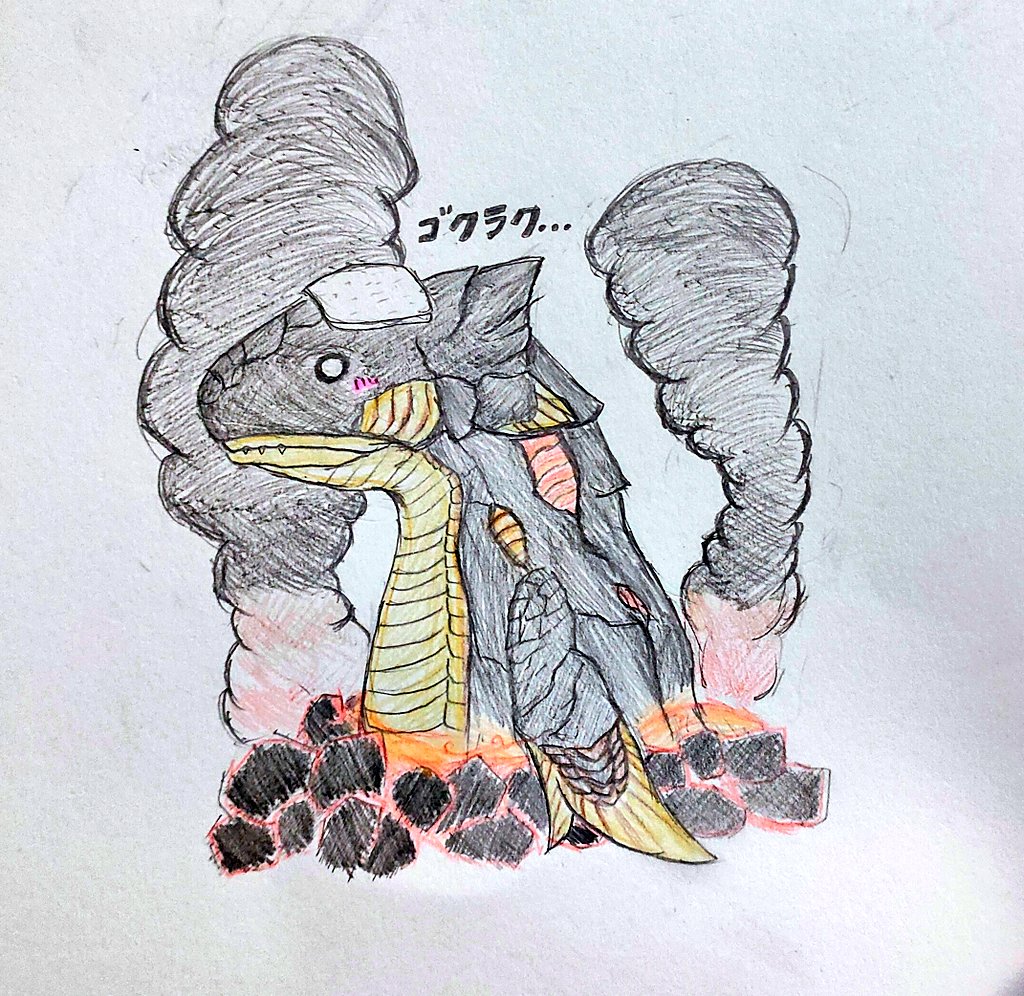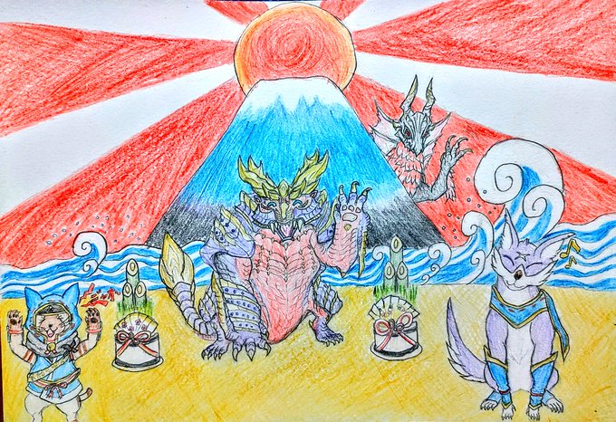 #過去作で自分が最高だと思う絵を1枚載せて5rtを目指せ #MHRise 間違いなくこれ、イラコン用に描いたマキヒコ君を主体にしたこの作品が1番印象深い! 色んな人に評価をもらえてものすごく嬉しかった…