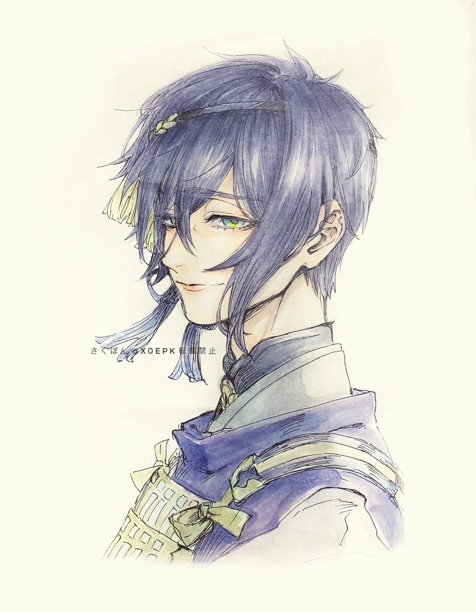 最近資格試験で忙しくしており、やっと終わりましたので お久しぶりの投稿です! お題箱より「燭台切光忠」 描きたいところ(顔)だけ描きました...😌