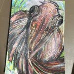 絵を描いてた。定まらない。 コレって、UMAの絵だねってのが。定まらない。ι(`ロ´)ノムキー💢💢 #イラスト #お絵描き #ペン画 #色鉛筆 #落書き #オリ #モヤモヤムカムカ