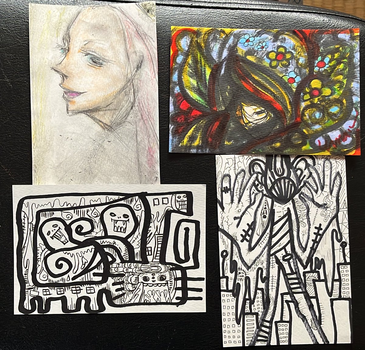2人を描いた。 #ペン画 #イラスト #マジック #落書き #お絵描き #ハガキサイズ
