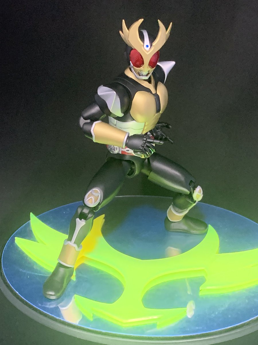 #今月作ったプラモ晒そうぜ #hobbyspace36 #模型制作部 #FigureriseStandard ウルトラマンスーツティガスカイタイプと、仮面ライダーアギト、バンダイさんのティラノサウルス(パチ組み)です。 アギトは紋章(とベルト)を蛍光イエローで塗り、UVライトを当てて撮影しました。