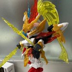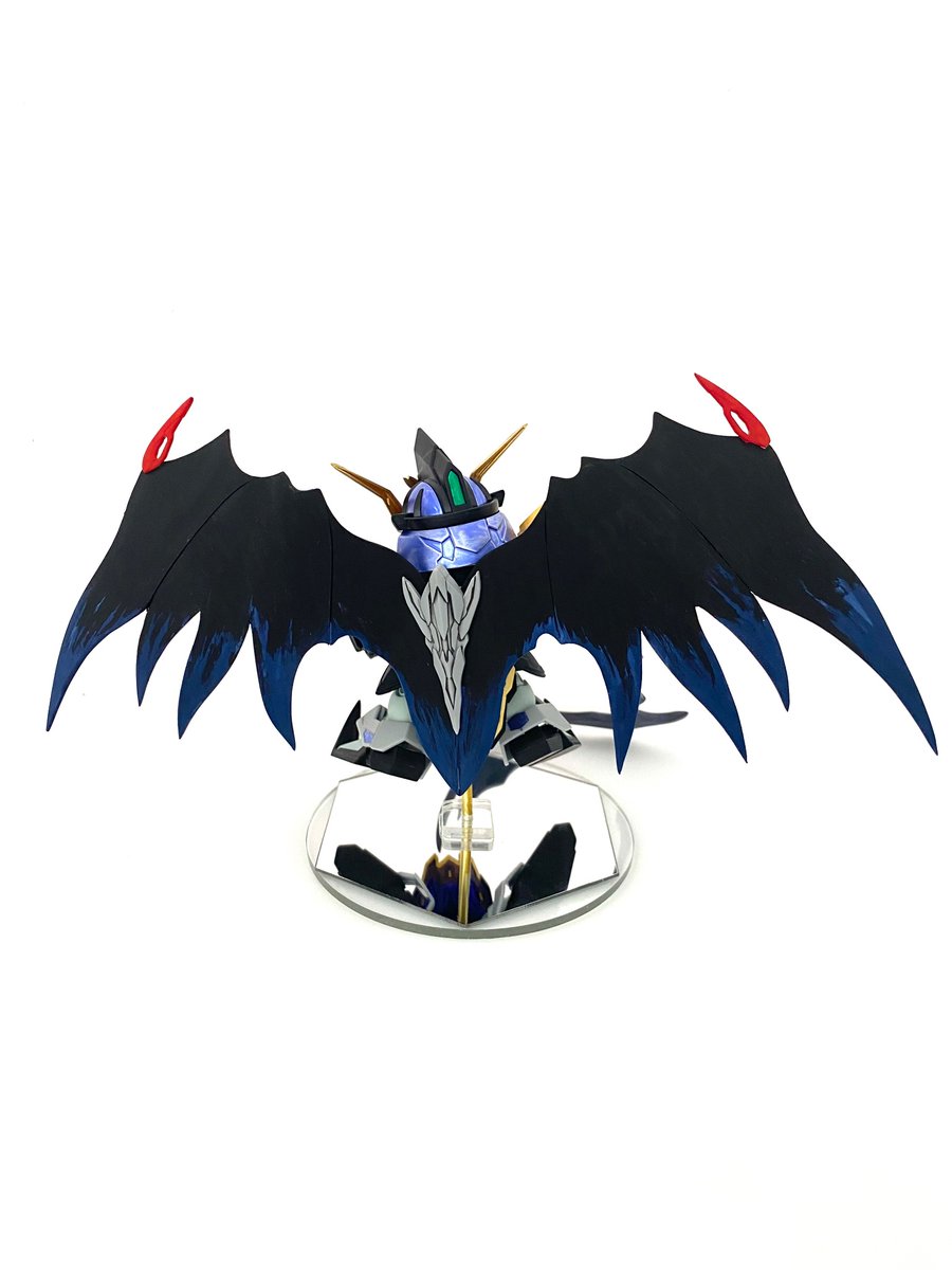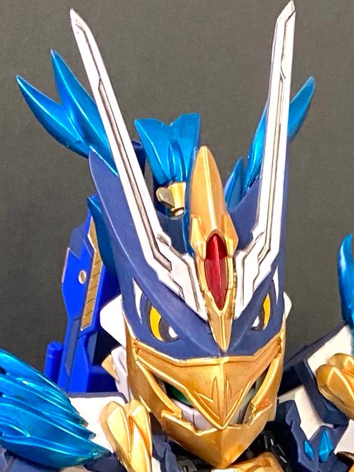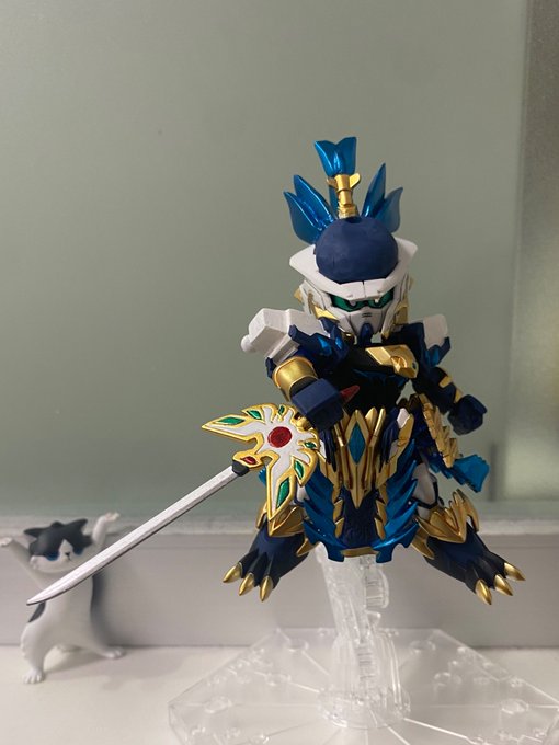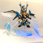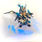 隼アストレイ 完成! 孫策アストレイが武を極め 四獣王・隼を継承した姿 青隼の再現のために 軽装形態への改造が大変でした 羽はプラ板自作です 自作台座&エフェクト羽はブラックライトで光ります スレに続く #SDガンダム #SDガンダムワールドヒーローズ #ガンプラ #ガンプラ好きと繋がりたい