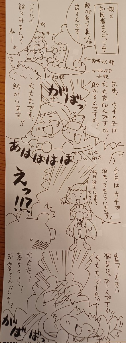 あんまりやると「コラーーーー!!」って怒る(笑) 消えてしまったので再up #落書き #イラスト #育児 #子育て #漫画 #4コマ #お医者さん
