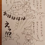 「チョーおもろいー😆」と娘に大ウケでした(笑) 所々、漢字が読めないので読んであげてます☺️ #落書き #イラスト #育児 #子育て #漫画 #4コマ