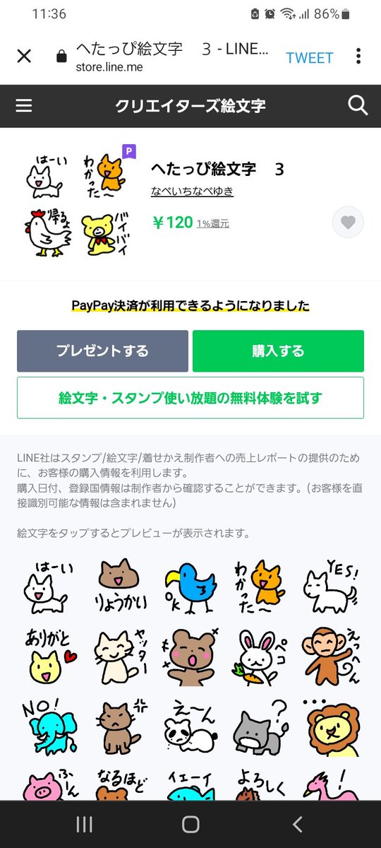 0 3 新作LINE絵文字「小学生の絵文字3」リクエスト出しました! 3セットで123個絵を描いたと思うと凄いな(笑) 次回作も頑張りますー♪ #LINE #ライン #絵文字 #新作 #育児 #子育て #落書き #イラスト line.me/S/shop/emoji/a… 22/10/26 11:16