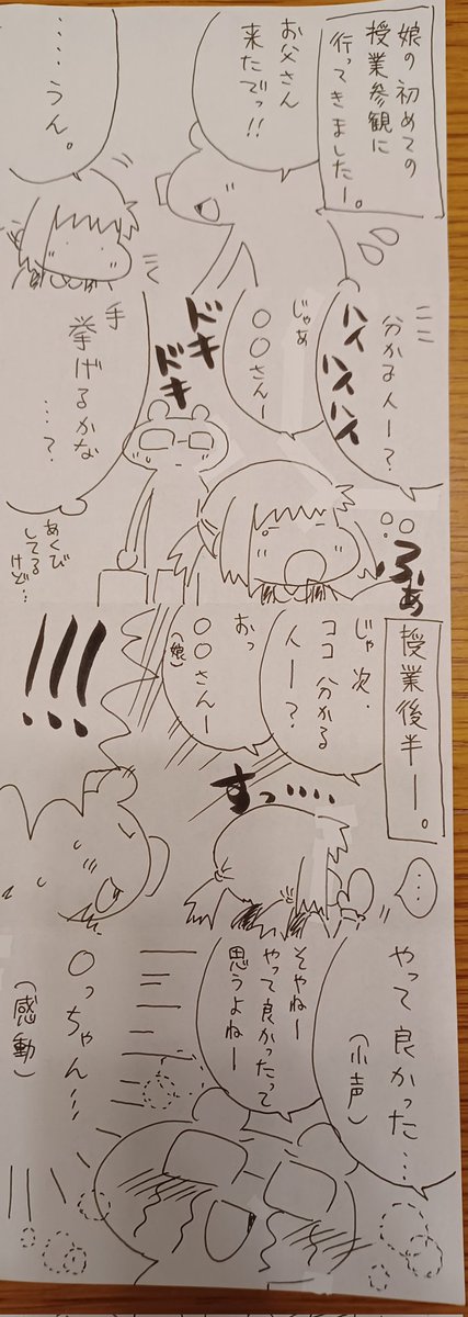 泣きそうになった(親バカ) いや、ウチの娘は外でだいぶ大人しいから心配になるな(´・ω・`) #子育て #育児 #家事 #イラスト #落書き #漫画 #マンガ #学校 #授業参観