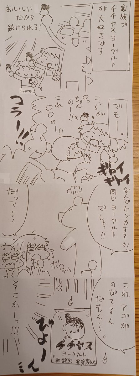 自分はいつも2つずつ食べるので、チチヤスヨーグルトの大容量パックとか欲しいです😋 #チチヤスヨーグルト #落書き #イラスト #育児 #子育て #4コマ #漫画 #漫画が読めるハッシュタグ