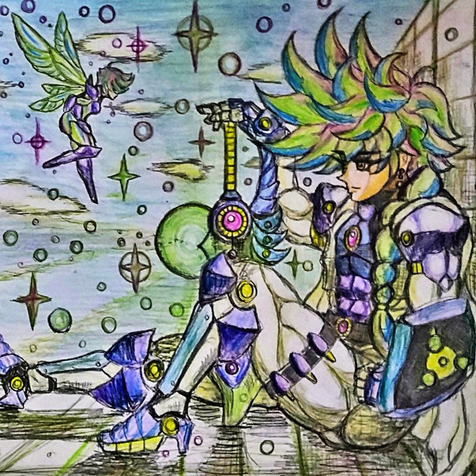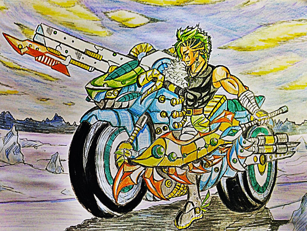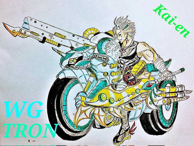 #イラスト好きさんと繋がりたい #イラスト好きな人とつながりたい #イラスト #イラスト練習中 #オリジナルキャラクター #MTG #遊戯王 自分のデッキ、WGトロンのイメージキャラクター、描きました(o^^o) ウギン(バイク)やカーン(ランチャー)、ワームとぐろエンジン(剣)などなど(o^^o)