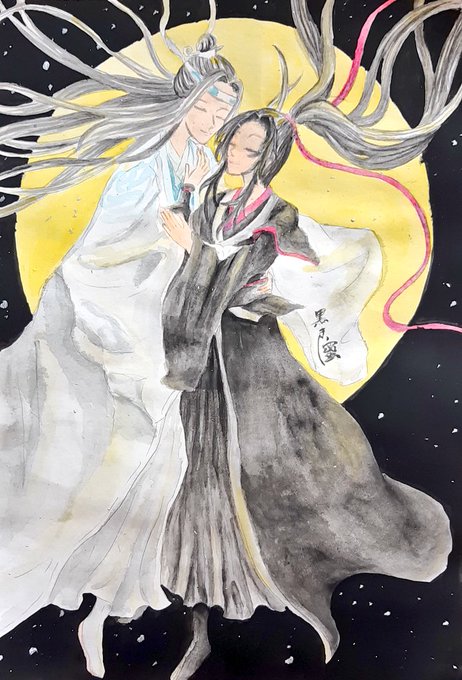 3 32 #イラスト/#魔道祖師/#水彩/#アナログ インクがなくて絵の具に逃げました……… てか、本当に魔道祖師は設定面白い…………… 21/09/25 18:22