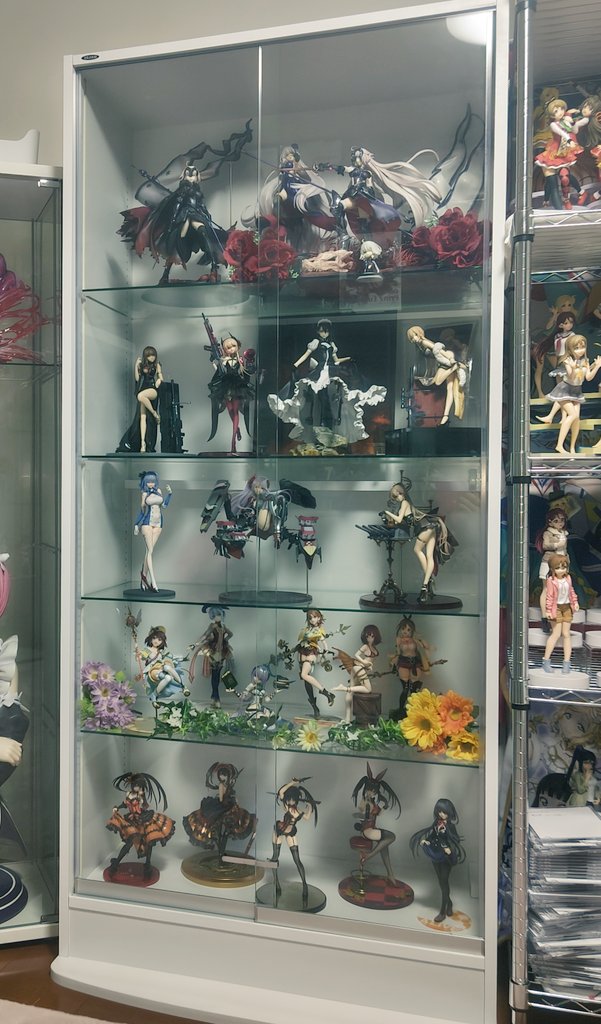 JAJANケースを掃除したついでに、フィギュアを一部入れ替えてみました😋上からジャンヌ[オルタ]、ドルフロ、アズレン、アトリエ系、時崎狂三。やっぱりケースは引き戸タイプがベスト😝扉タイプと比べ埃が入りづらい😌埃と直射日光はフィギュアにとって天敵です😖 #美しきフィギュア達の宴