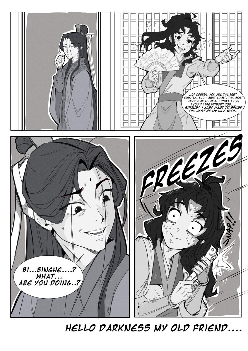 AND FINALLY THE LAST PAGE OF THIS MINI-COMIC!! perseverance page 4. XDD Dear Binghe, you try so hard... keep working! You can do it lil bun! 💪💪❤️❤️❤️ #ShenQingqiu #LuoBinghe #svsss #ScumVillainsSelfSavingSystem