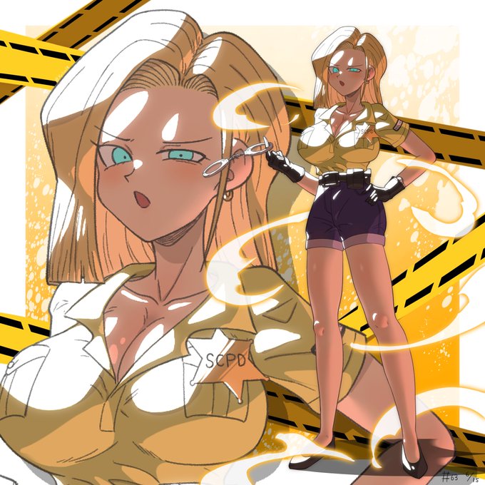 18号さん(クリリン警官衣装) #ドラゴンボール #イラスト