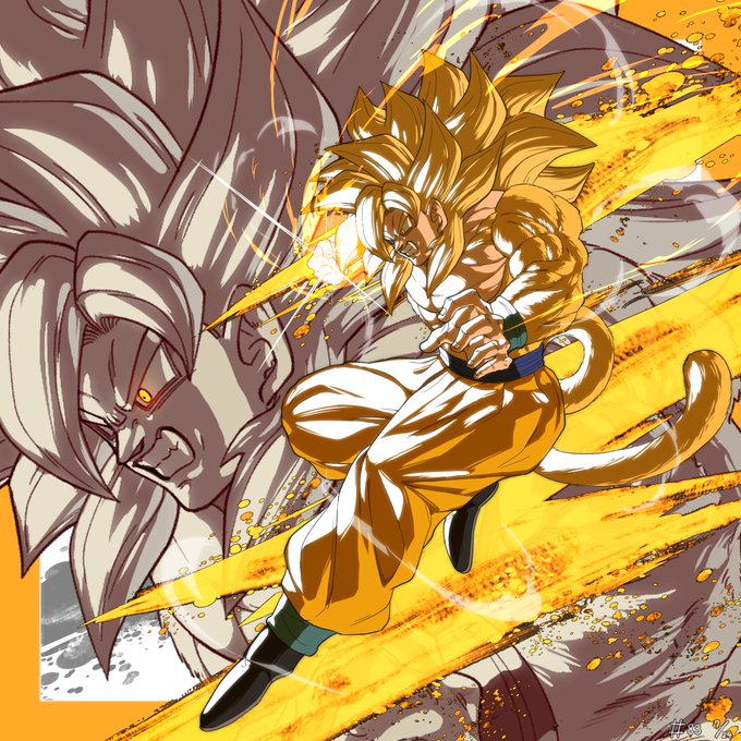 黄金超サイヤ人4差分 元ネタはヒーローズのアバターです、悟空はズボンが黄色だから微妙かもだけど結構好みのカラーチェンジ #ドラゴンボール #イラスト
