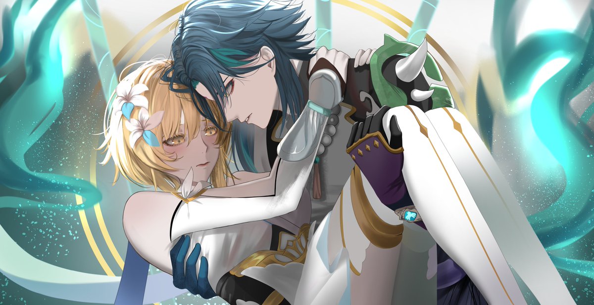 Lumine : I have traveled to many places. But after that I suddenly miss you. I hope you stay here #dilumi #diluc #Genshin #ディル蛍