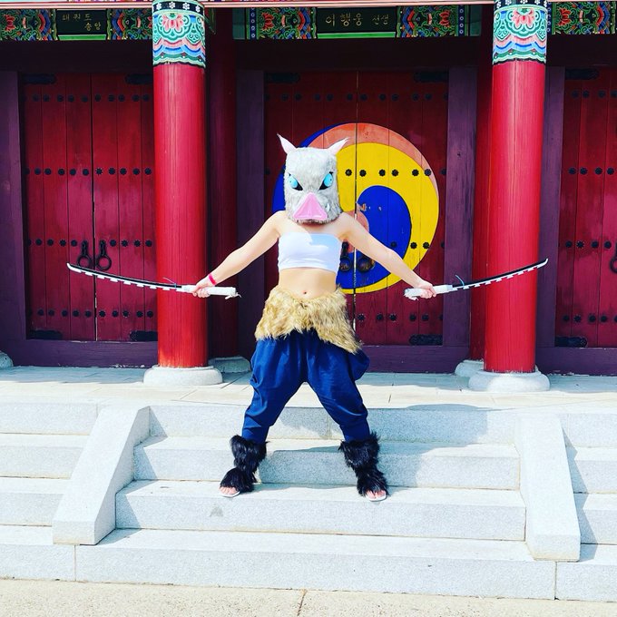 (3/3) So many awesome pictures from today.🤩 #arkansascomiccon #inosuke #cosplay #DemonSlayer #anime