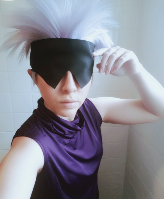 Lawlz. Lazy cosplay try on. I need to make a better mask but omggggg the wig is perfect. Imma be the best sensei >:3 #JJK #JujustuKaisen #GojoSatoru #cosplay #costest #anime