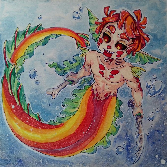 Ах, мальчик-русальчик, сколько девушек страдают #OC #traditionalart #watercolor #mermay #mermay2021 #Mermaid