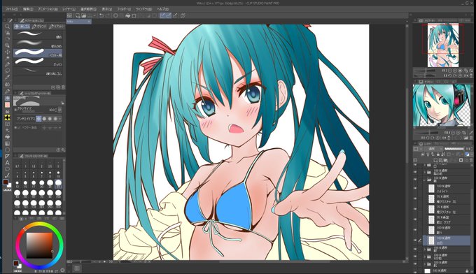 45 146 #水着 ミクさんできた~ #初音ミク #ミク #Vocaloid #お絵描き #お絵描きさんと繋がりたい 20/06/21 03:25