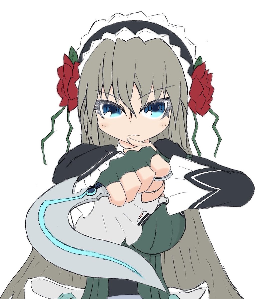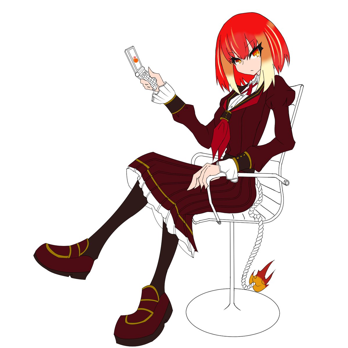 #ボンバーガール テッカさん、制服版。さっき投稿したものに行き詰った際に描いてみてたものです。こっちの格好も良いよね。 スカートの内側で足組んでいますって伝わるのかな? #Xiao_イラスト