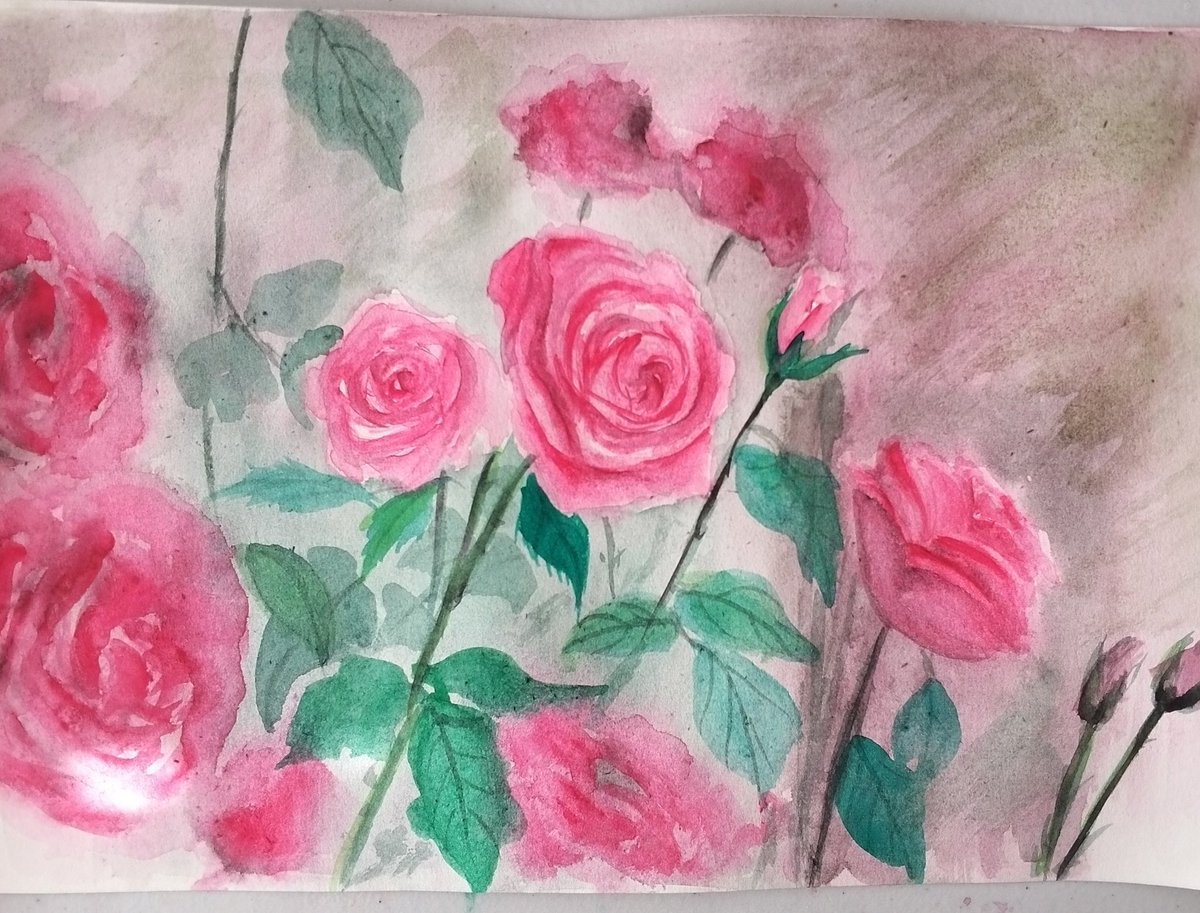 watercolor palette knife painting-lovely roses. 😊✌ #painting #watercolor #floral #flowers #floralpainting #watercolor_daily #watercolor_gallery #watercolor_art #watercolorpainting #fineart #artist #share_paintings #share #pink #colorful #knifepainting #水彩画 #玫瑰 #画刀作品