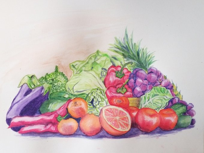 Autumn is my favorite season, it is for harvest. 🍇🍍🍅🍊🍆🥒🥬🥦 #painting #watercolor #art #artist #artistsoninstagram #illustration #share_paintings #fruit #vegetables #harvest #autumn #fall #watercolor_daily #watercolorpainting #水彩画 #丰收 #水果 #蔬菜 #插画
