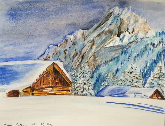 "snow cabin", watercolor painting demo video is uploaded to my YouTube channel. A simple winter scenery brings you inner peace. 🙏🥰 #painting #watercolor #art #artist #illustration #landscape #mountains #cabin #snow #winter #youtube #video #水彩画 #雪景 #风景 #小木屋