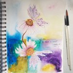 Daisy and Butterfly, by watercolor. A fresh start of my new sketch book. Video is available on my YouTube channel now. 🥰🙏🌹 #painting #watercolor #art #artist #artistsoninstagram #illustration #share_paintings #butterfly #daisy #水彩画 #雏菊 #蝴蝶 #video #youtube #视频