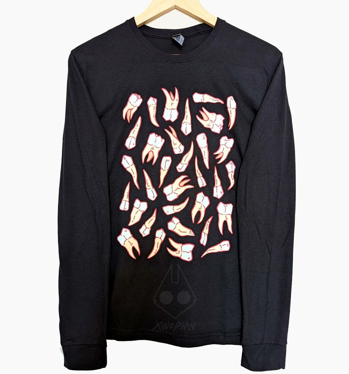 Newest additions to the store! ⚔️🦷 I really love how these prints came out and the fabric is so soft! Limited stock available on my store! ❤️ Xinophin.Bigcartel.com ❤️