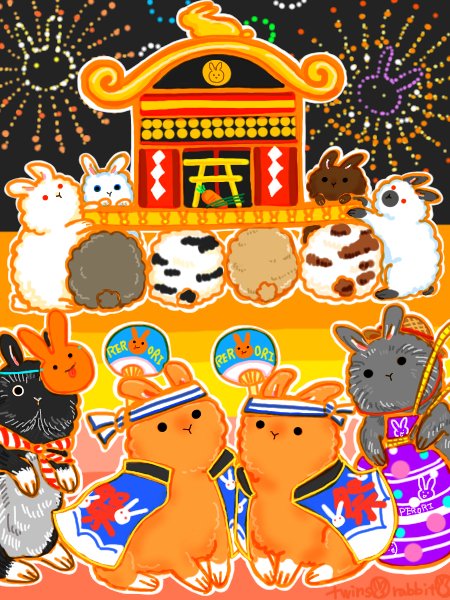 35 228 夏祭り🐰🎇 #イラスト #うさぎ #ゆるいイラスト 23/08/01 05:22