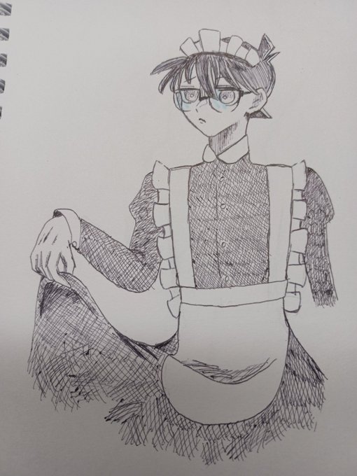 メイドの日だそうなので描いてみました(*´▽`)#メイドの日 #名探偵コナン #メイド服 #江戸川コナン