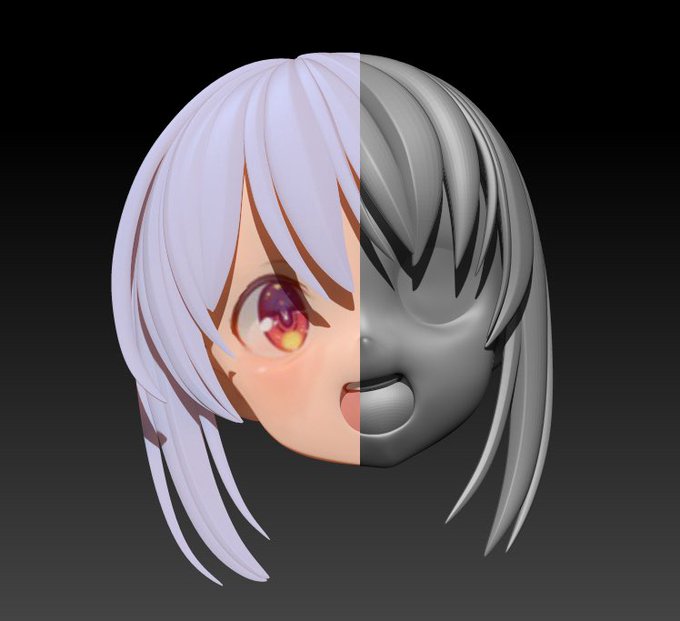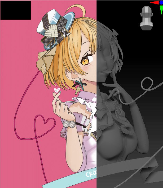 4 26 今日プロ原型体験講座で大西先生(@hgschool01 )にアングルを直して、元絵に似てれるように調整しました #メルArt #夜空メル #zbrush 22/03/23 00:41