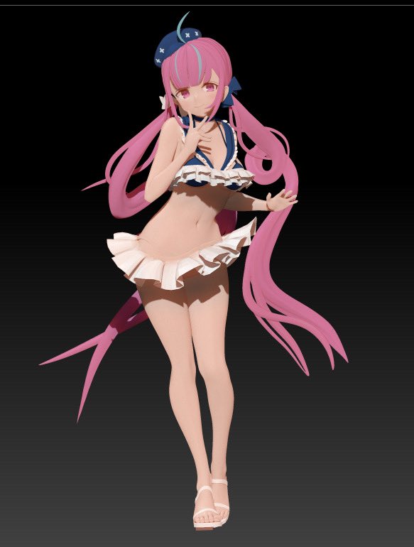 23 214 フィギュア原型製作練習05 今回練習フィギュアはがおう先生描いた湊あくあの水着イラストをモチーフして全身フィギュア製作しました。 #湊あくあ #あくあーと #zbrush 22/06/06 21:43