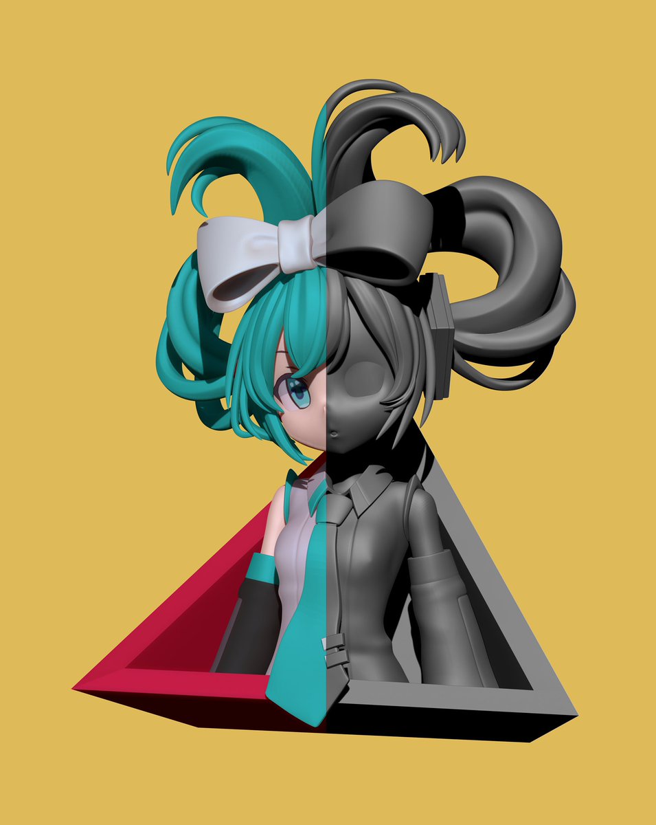 連休で自分描いたミクを立体化した~ 元イラスト:自分 「る返り振」ミク #初音ミク #MIKUEXPORewind #zbrush
