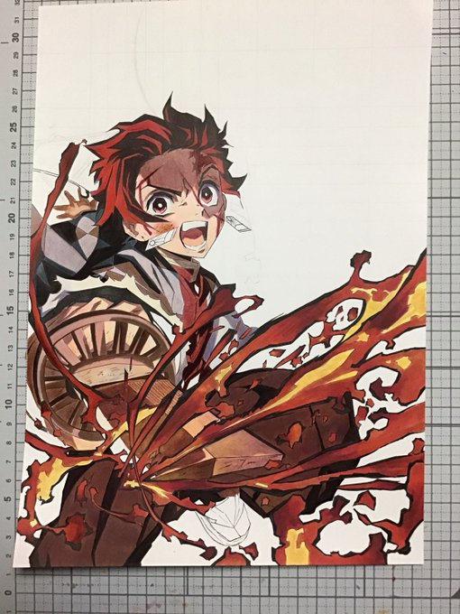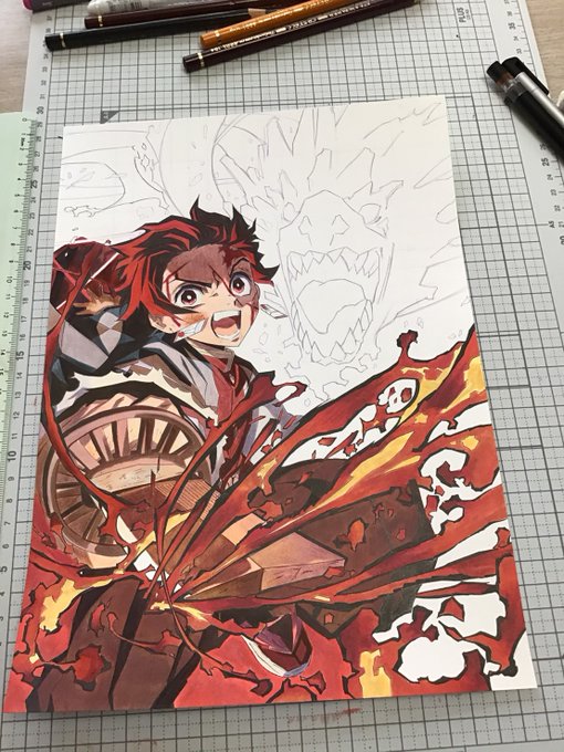 経過ラストで‼️明日完成を目指して頑張ります🎵 #鬼滅の刃好きさんと繋がりたい #鬼滅の刃絵描きさんと繋がりたい