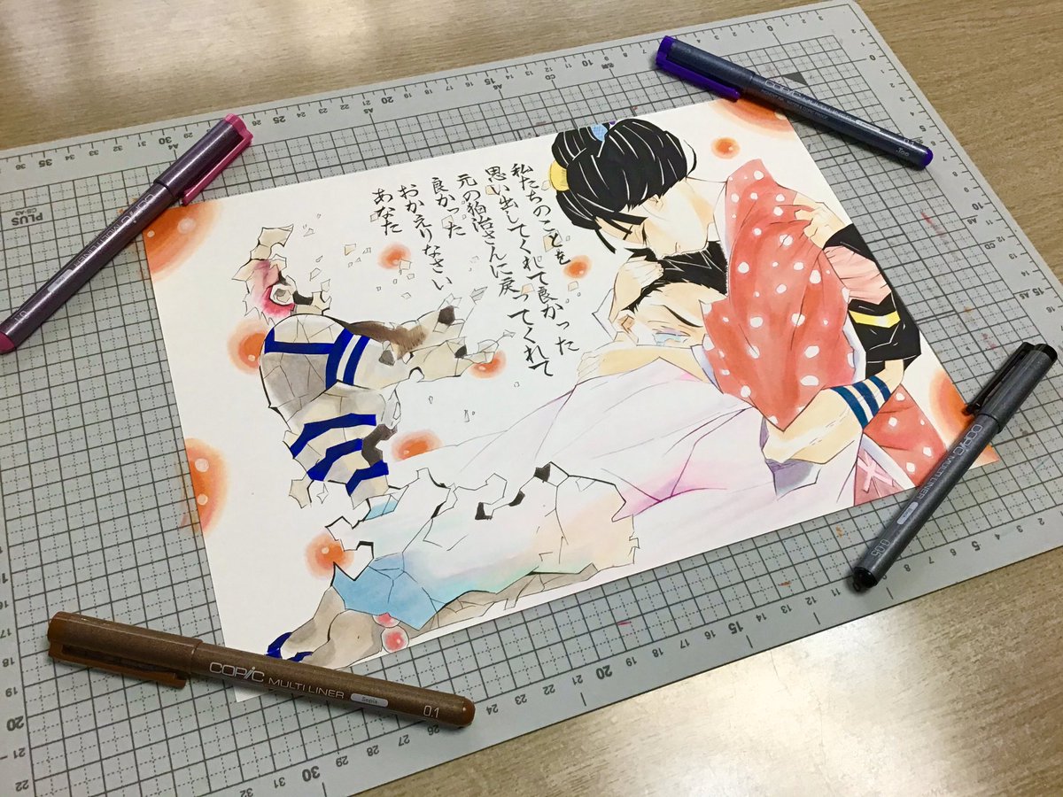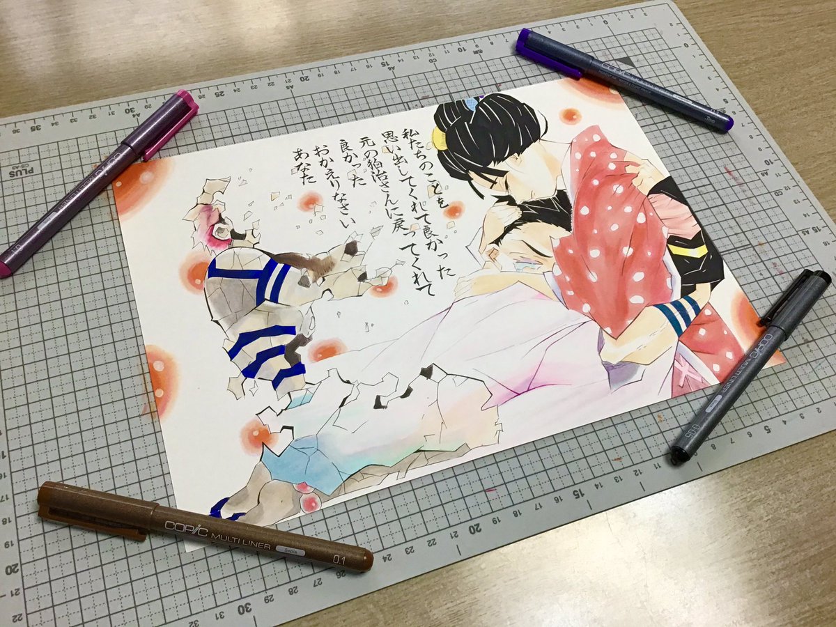 53 390 「私たちのことを思い出してくれて良かった。元の狛治さんに戻ってくれて良かった。おかえりなさい、あなた···」大好きなシーンを模写させて頂きました😍構図などはオリジナルです!良ければ沢山の方に見て頂きたいです😆 #鬼滅の刃 #模写 #コピック 20/04/05 19:00