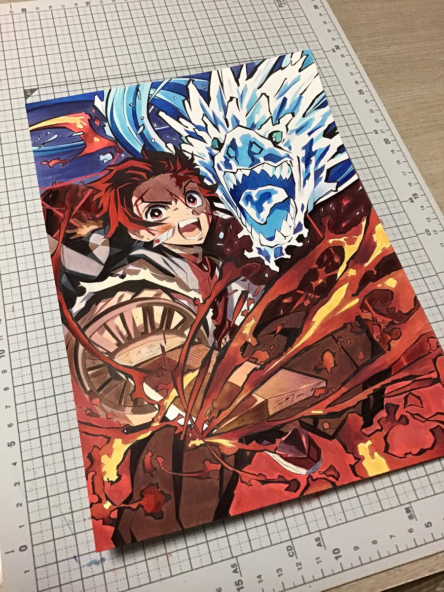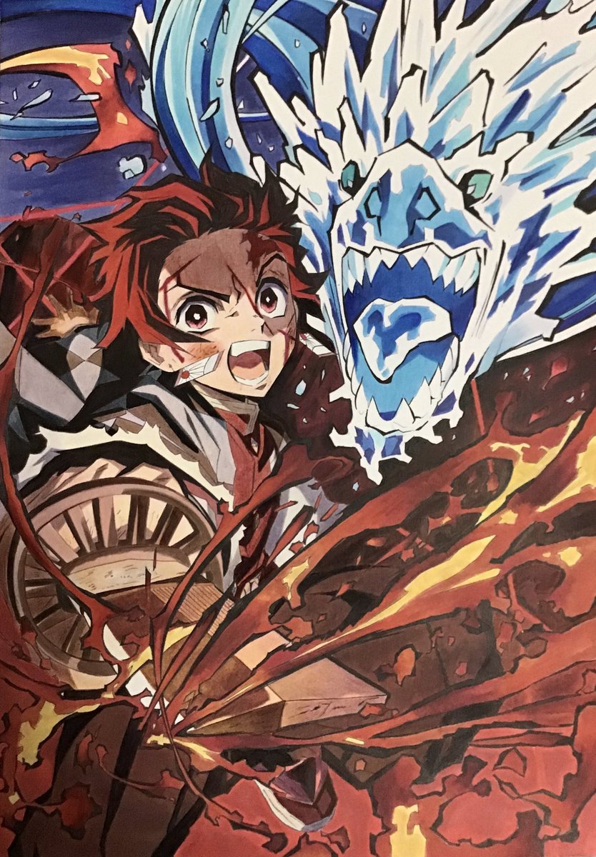 68 476 やっと完成しました🎵😂鬼滅の刃で竈炭治郎です(*´ω`*)久々の完成絵です😍よかったらいいねRTお願いします🙇♂️⤵️ #鬼滅の刃好きさんと繋がりたい #模写 #コピック #色鉛筆 20/03/24 23:09