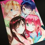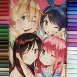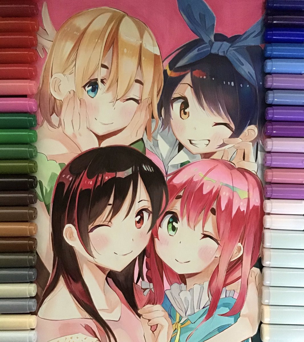 彼女お借りしますで千鶴ちゃん瑠夏ちゃん墨ちゃん麻美ちゃん描きました( •́ㅿ•̀。 )良ければ沢山の方に見てほしいです(*´ω`*) #模写 #彼女お借りします #コピック #色鉛筆