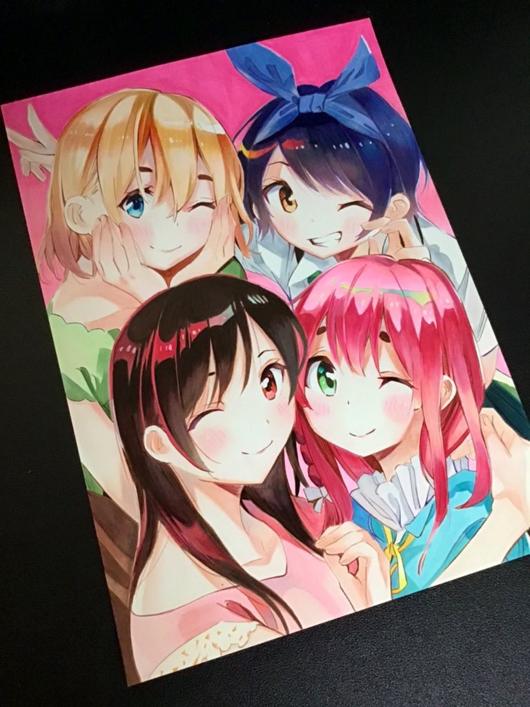 127 601 彼女お借りしますで千鶴ちゃん瑠夏ちゃん墨ちゃん麻美ちゃん描きました( •́ㅿ•̀。 )良ければ沢山の方に見てほしいです(*´ω`*) #模写 #彼女お借りします #コピック #色鉛筆 20/08/16 20:00