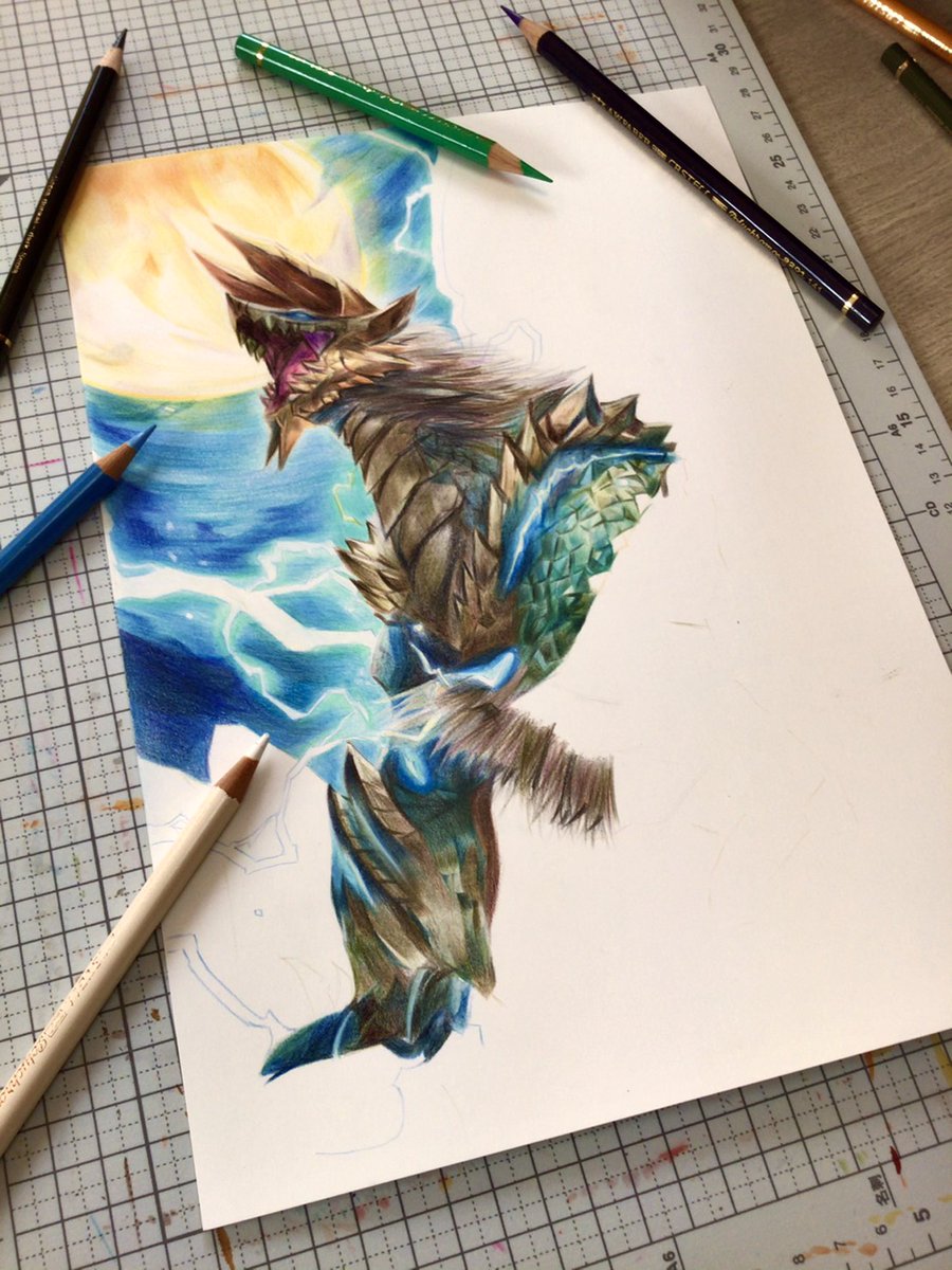 約100時間以上かけてジンオウガ描きました(*`・ω・*)ゞ 良かったら見てください❗❗ #模写 #色鉛筆 #モンハン