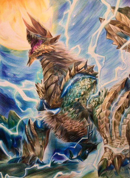 81 529 約100時間以上かけてジンオウガ描きました(*`・ω・*)ゞ 良かったら見てください❗❗ #模写 #色鉛筆 #モンハン 20/12/13 20:10
