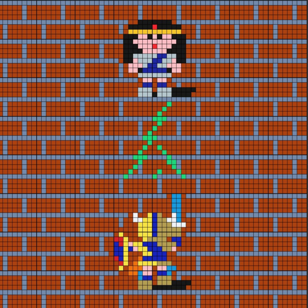 貴重なお昼休みを丸々お絵描きに費やしてしまいました・・・ #8bitPainter おそろしい子! #ドルアーガの塔 #カイ #ギル #ドット絵 #pixelart