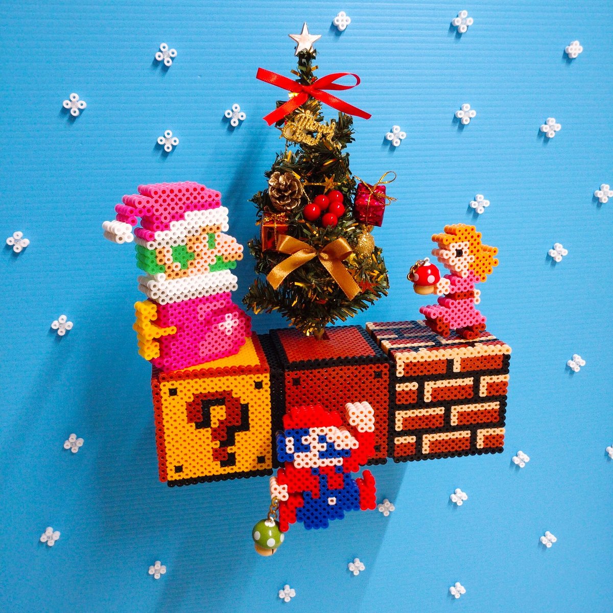 おはようございます。10年前にアレンジしたドット絵を再アレンジするなどしたアイロンビーザーです。よろしくお願いします #マリオ #ルイージ #クリスマス #ドット絵 #pixelart