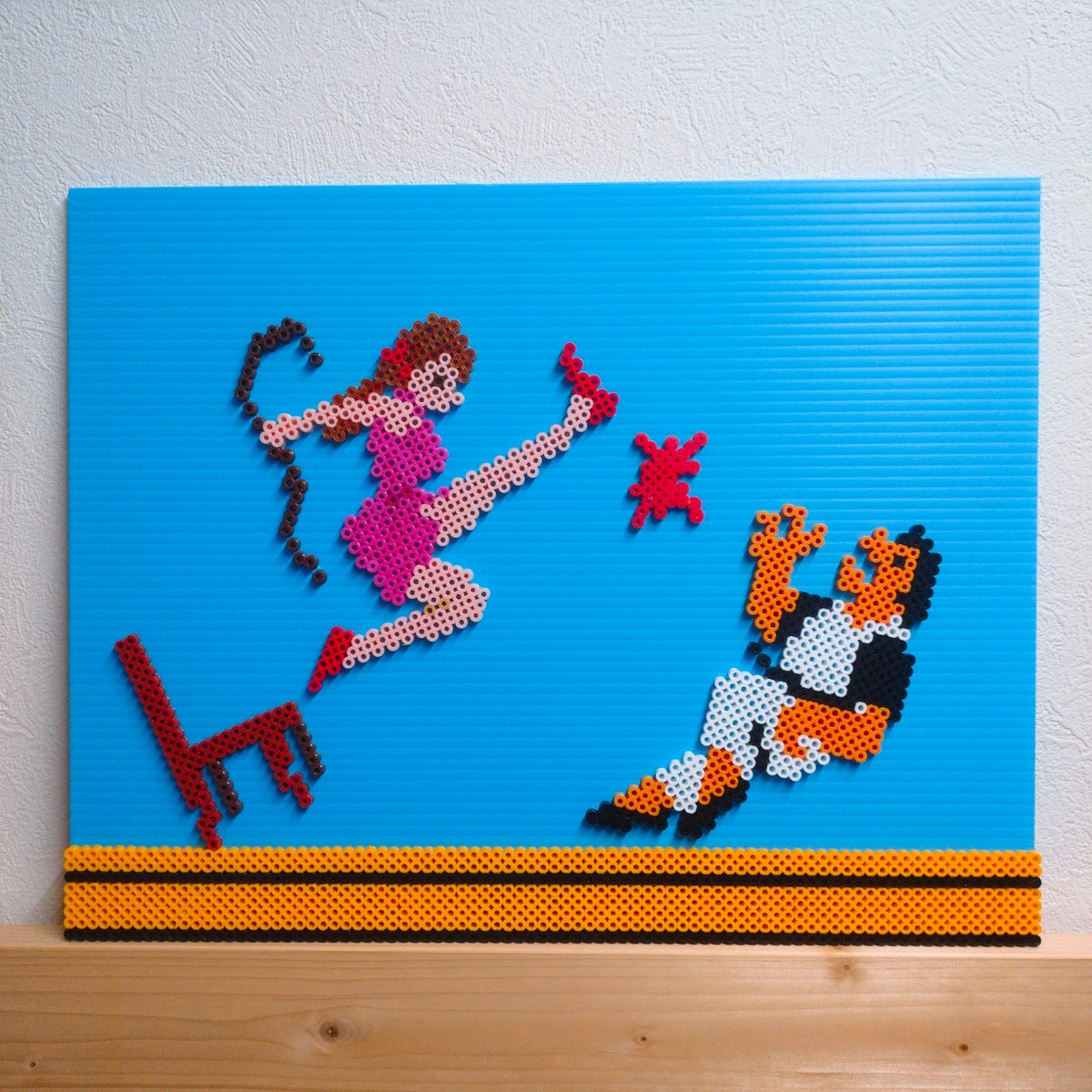 モンスターがあらわれるまでの間は… #お姫様抱っこ #アイロンビーズ #パーラービーズ #perlerbeads #pixelart #ドット絵