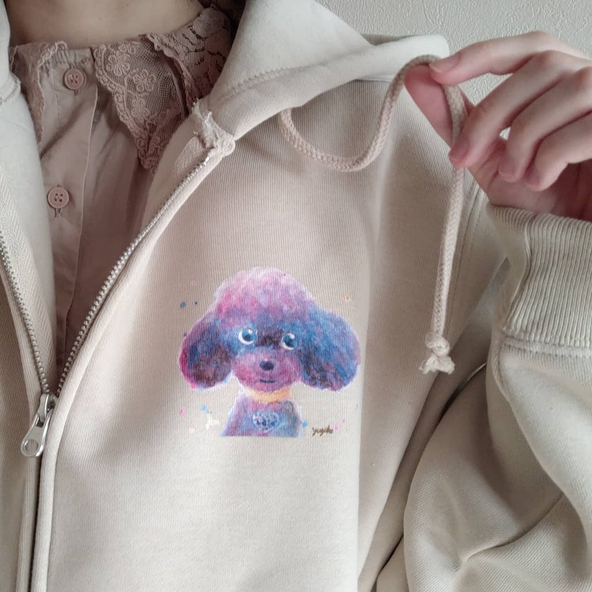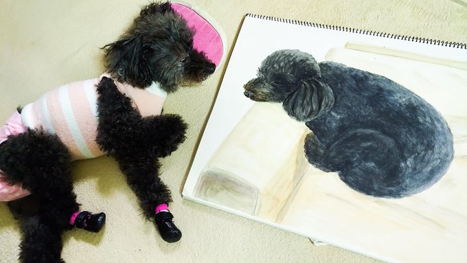 オーダーのうちの子似顔絵で描いた さくらちゃんとぽっちゃんTシャツです。 毛の感じとかすごくきれいに印刷されてる。 かわいい! #Tシャツトリニティ #プードル #トイプードル #いぬいらすと #犬Tシャツ #うちの子グッズ制作 #水彩画 #犬好きさんと繋がりたい #イラスト #可愛い #お散歩