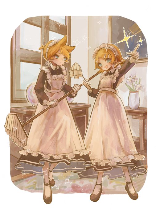 メイドの日! #イラスト #メイドの日 #鏡音レン #鏡音リン