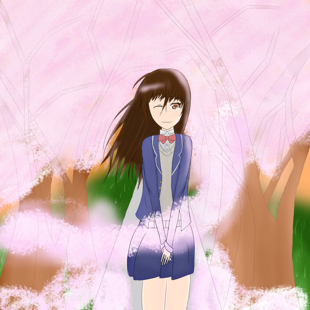 桜と女の子。 #イラスト #絵柄が好みって人がいたらいいなぁ #絵柄が好みって人にフォローされたい